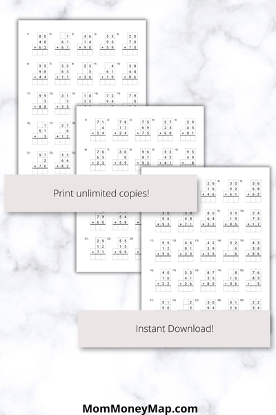 You can print unlimited copies of this adding worksheet printable and reprint the pages your child has difficulty with. There are also detailed instructions with additional tips on how to save and make more money.