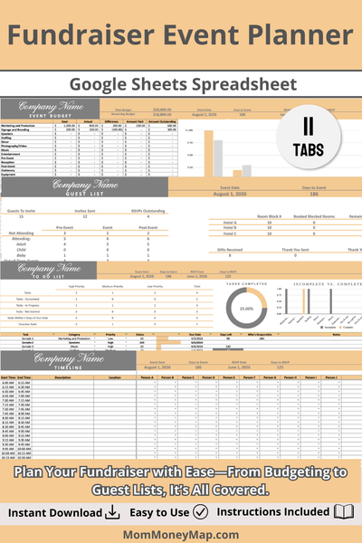 Perfect for nonprofits, schools, and community groups, this spreadsheet helps you manage guest lists, ticket sales, expenses, and donations all in one place.