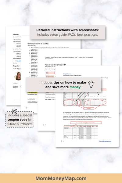 There is also an extensive instructions manual containing what's on each tab, how to use each tab, and additional tips on how to save and make more money.
