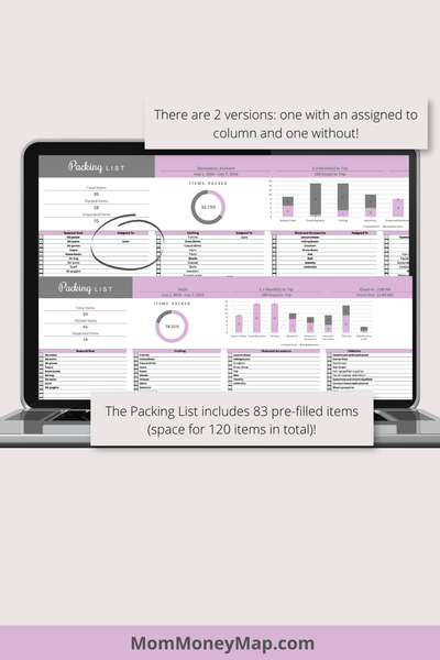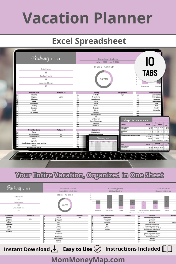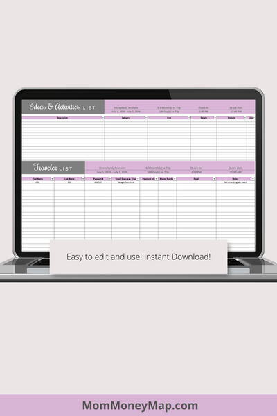 Plan your trips in style with this Vacation Planner Excel Spreadsheet – Purple, designed for travelers who want both organization and aesthetic appeal.
