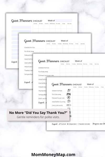 Help children learn respectful behavior when visiting friends or family with this Guest Manners Checklist Printable PDF. This simple, kid-friendly checklist clearly outlines expectations for being a polite guest and encourages good social skills in real-life situations.