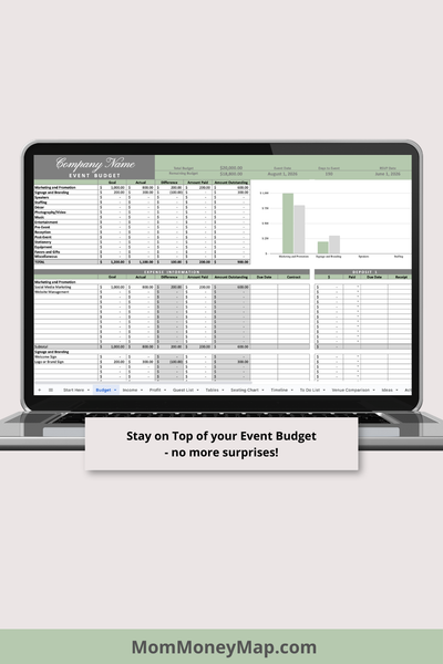 1. Event Budget (space for 15 categories and 144 expenses)