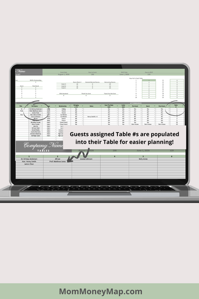 5. Tables (guests are automatically populated in each table based on where they've been assigned in the Guest List Tracker)