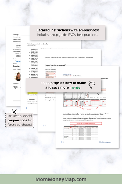 There is also an extensive instructions manual containing what's on each tab, how to use each tab, and additional tips on how to save and make more money.
