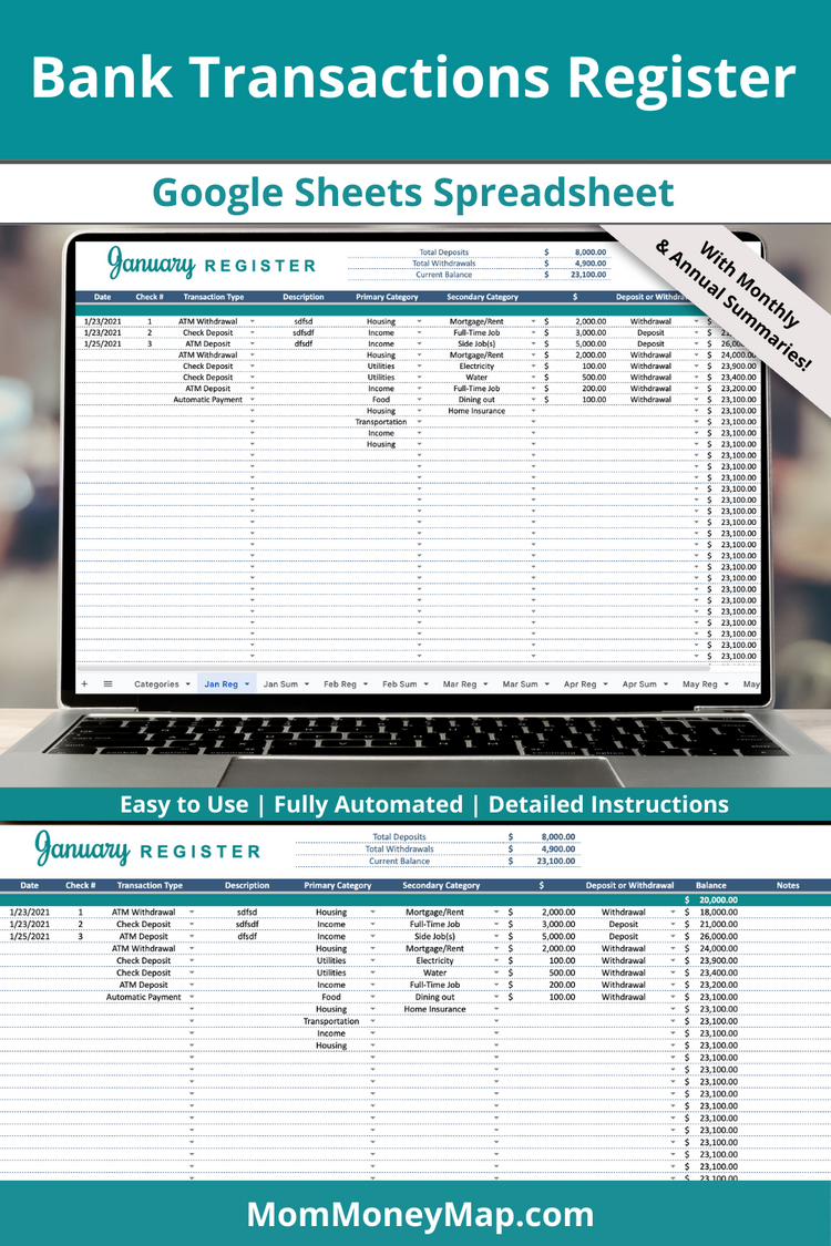 This Bank Transactions Register Google Sheets Spreadsheet will help you track all your bank transactions digitally on the go with your phone, tablet or laptop!