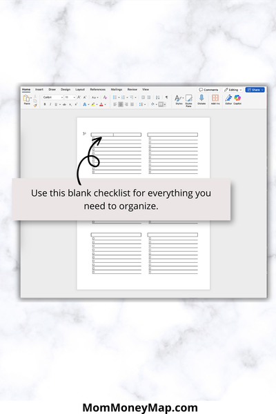 Blank Checklist 8.5x11 Word Document - 6 Categories