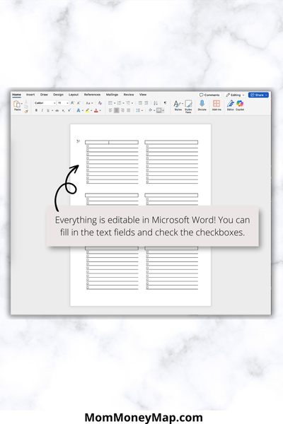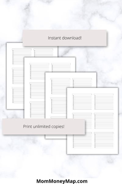 Designed in a standard 8.5x11” format with 6 categories, this checklist is perfect for to-do lists, project planning, home organization, school assignments, and more.
