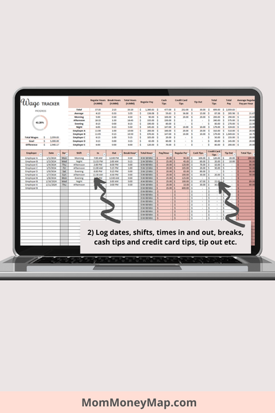 Wage Tracker Excel Spreadsheet - including Tip Out